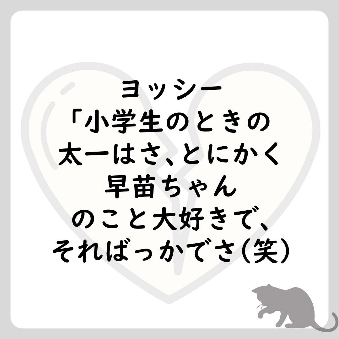 シタ旦那(太一):早苗と小学生からの同級生。高校生の時に交際をスタート。